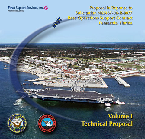 The original cover (left) for this proposal incorporated photos and logos from the official Navy website. These were composited and the "swoosh" added in Photoshop.